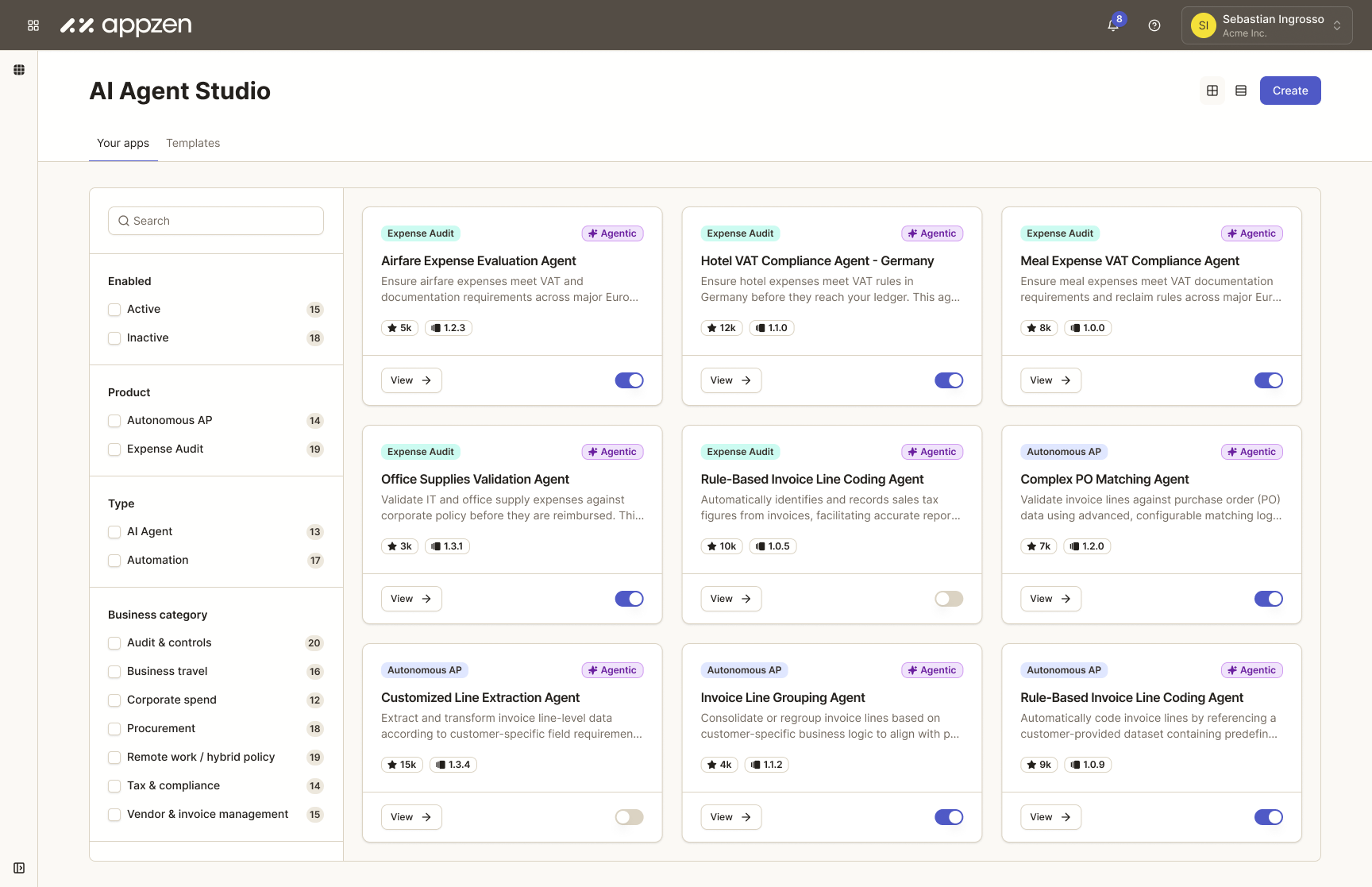 최근 AppZen에서 AI Agent Studio를 출시했다. Enterprise의 Finance 팀이 그들의 financial operation에 맞는 AI Agent를 만들고 테스트하고 적용할 수 있는 플랫폼 제품이다. 나는 이 제품의 디자이너로 개발에 참여하고 있다.